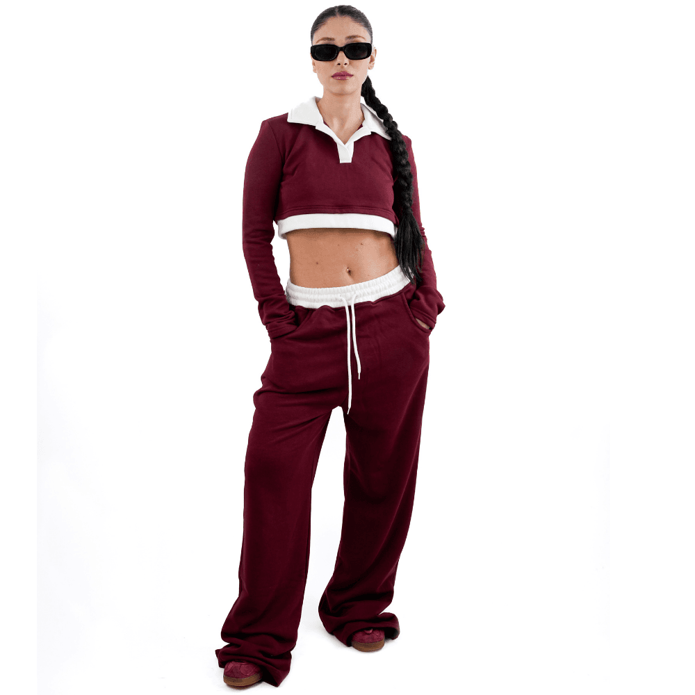 Konforlu yapısı ve modern crop kesimiyle öne çıkan bordo eşofman takımı, günlük stiline sportif ve şık bir dokunuş katar.